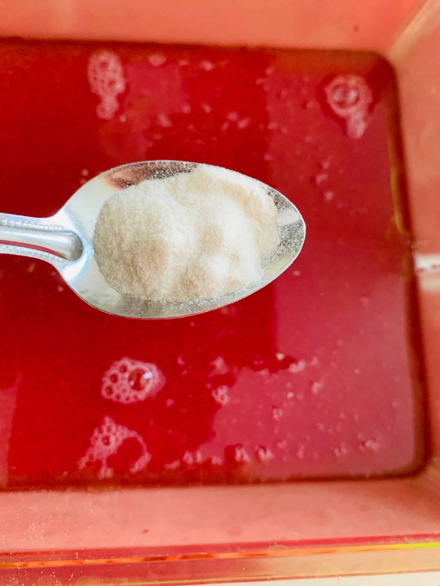 J’utilise de l’agar agar et je l’assouplie afin que la texture s’approche au maximum du bonbon ourson Haribo. J’ai testé différents dosages d’agar agar, si on en met trop c’est trop cassant, pas assez c’est mou .Retrouvez l’agar agar que j’achète sur ce site car pas cher.