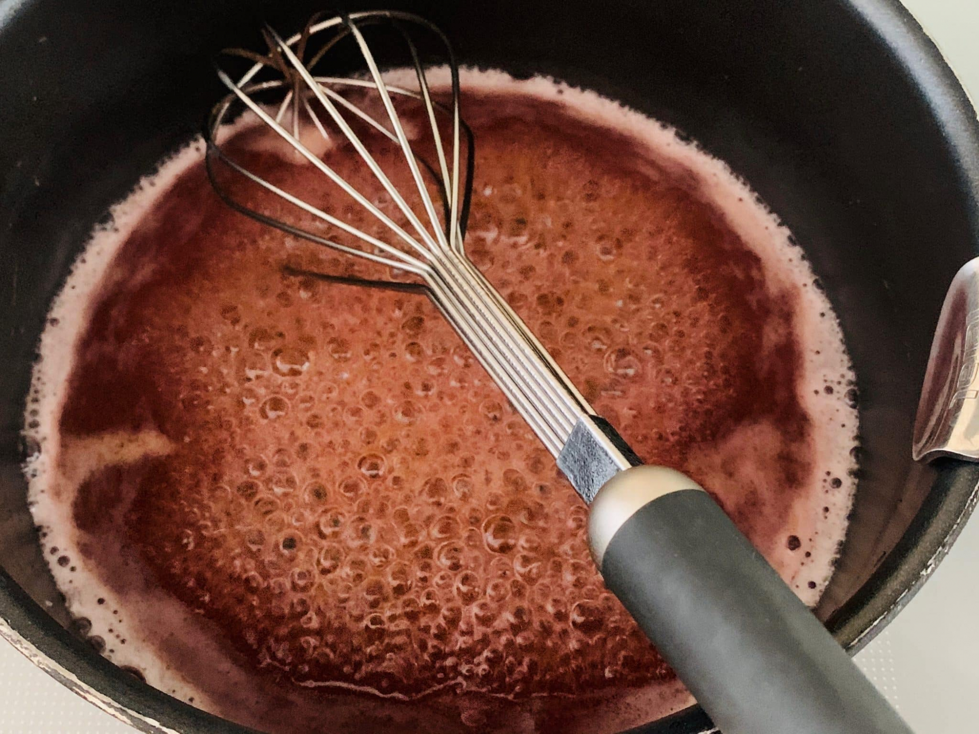 150 grammes de jus de fruits (industriel, maison) . Ici, j’utilise le jus de cuisson de prunes. Vous pouvez utiliser de la pomme, framboise, fraise, orange et même des sodas.