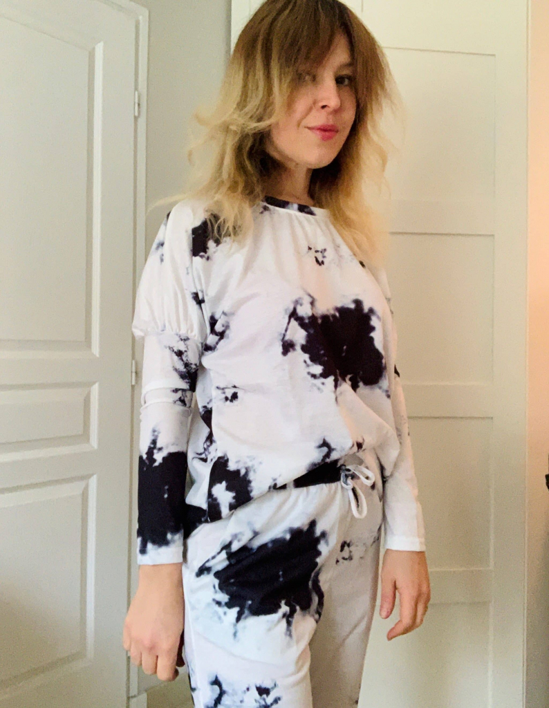 Deuxièmement mon ensemble marbre tellement cool, retrouvez le ici . Il est question du Black Top & Loose Pants Set .