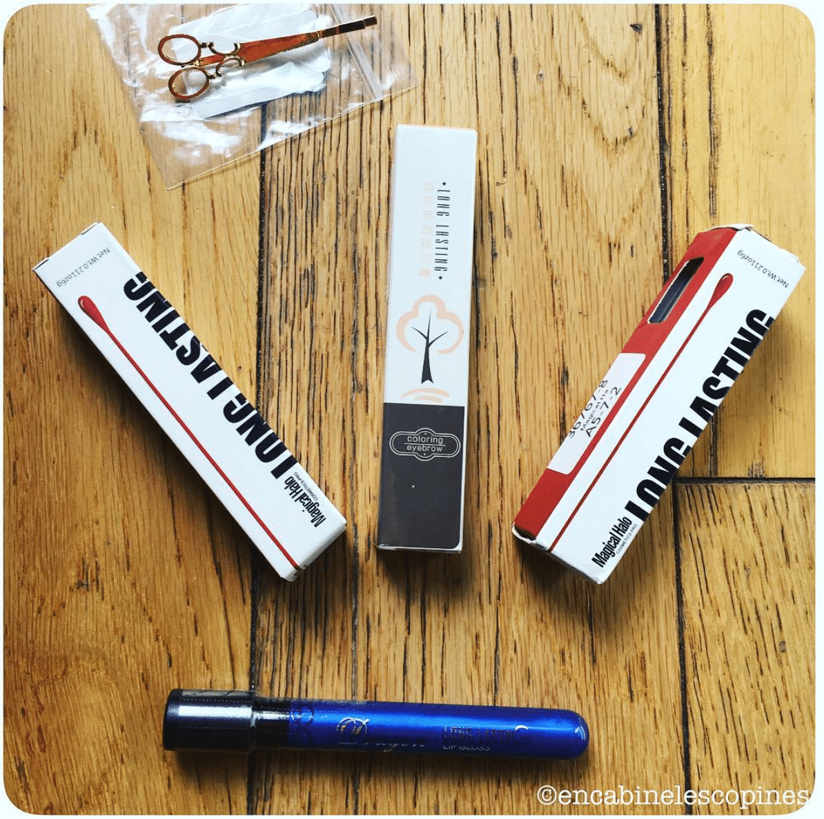 Je n’aurais jamais eu tout ça en boutique, 13 euros pour 3 encres, un pinceau sourcils et une pince a cheveux.
