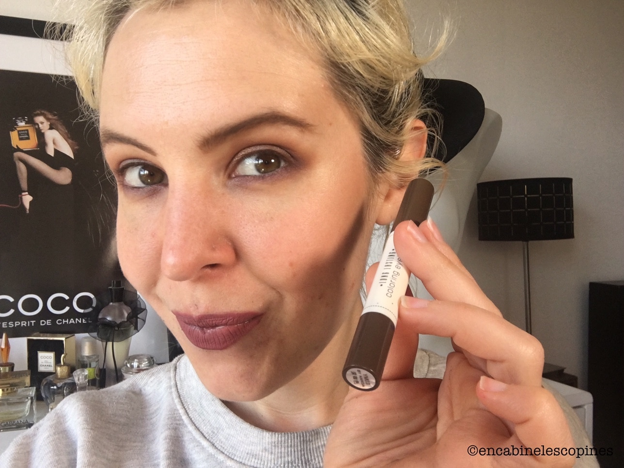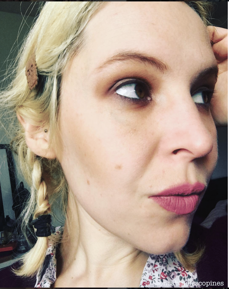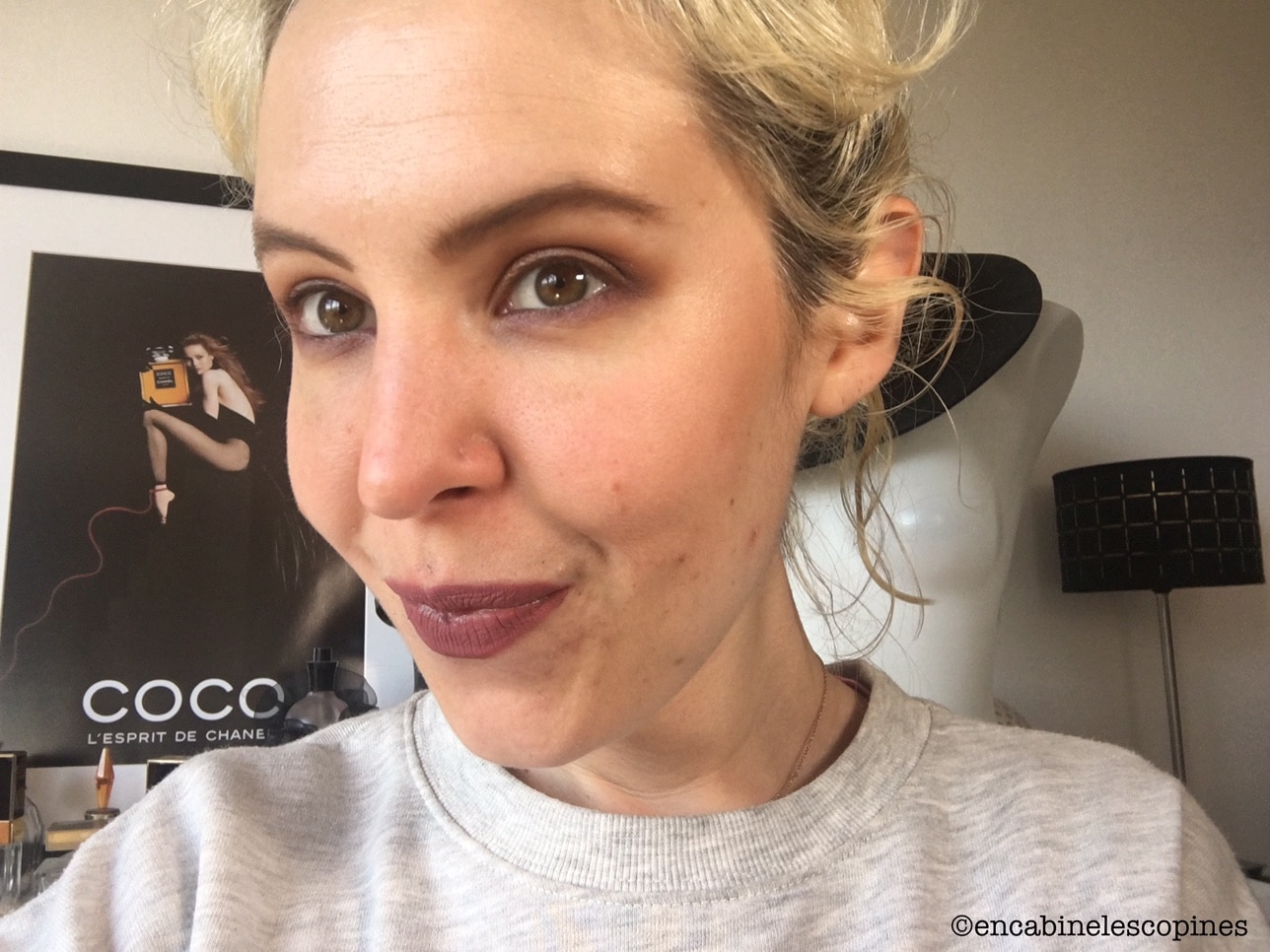 Sur cette photo je porte toujours l’encre à lèvre vieux rose et j’ai également utilisé le pinceau numéro 3 pour rectifier mes sourcils .