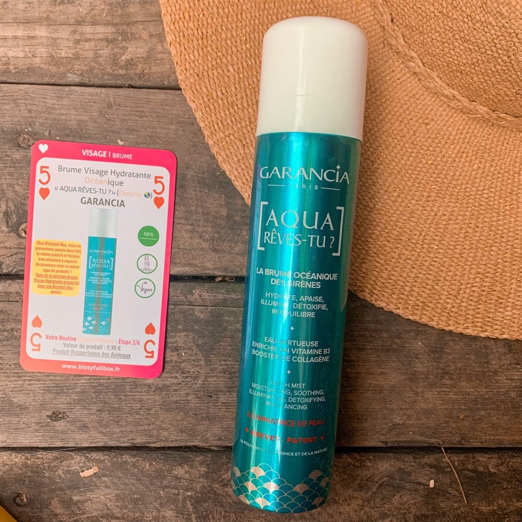 Cette brume apporte un geste plaisant de détente et un soin beauté car elle protège, hydrate et illumine. La beauty addict que je suis, est ravie de trouver Garancia dans Biotyfullbox Août 2022.