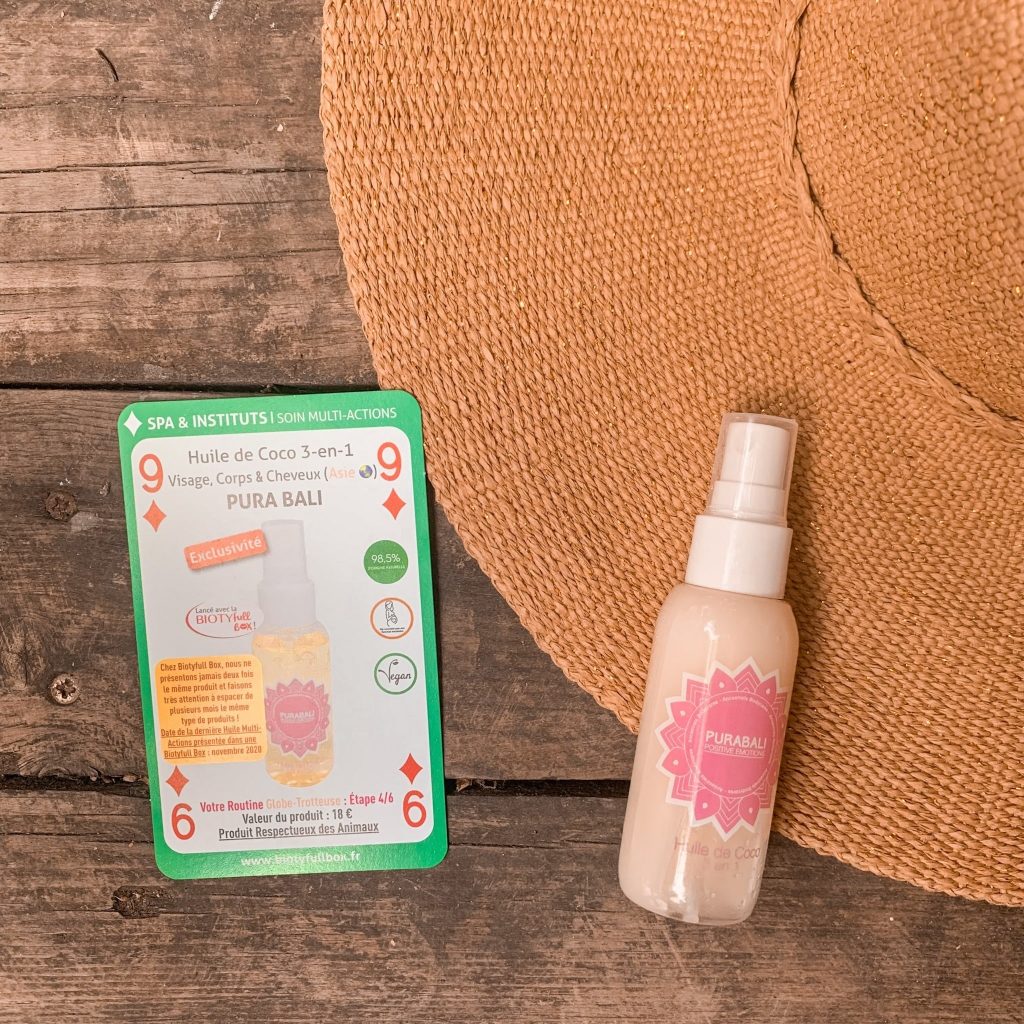 Pour continuer, un tout en un avec Pura Bali, huile de coco 3-en-1, elle s’applique sur les cheveux, le visage et la peau. Cette huile sans divinement bon le parfum coco, j’adore ce type de soin car j’en utilise toute l’année.