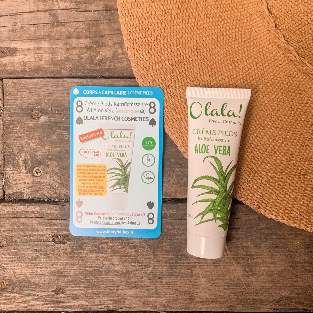 Ils ont pensé à tout en étape 5, une crème pour les pieds Olala French Cosmetics à l’Aloe Vera et huile de tournesol. Autant dire qu’elle tombe à pic car je marche pied nu l’été. Elle est aussi bien dans le thème, quand on fait un tour du monde, on marche énormément.
