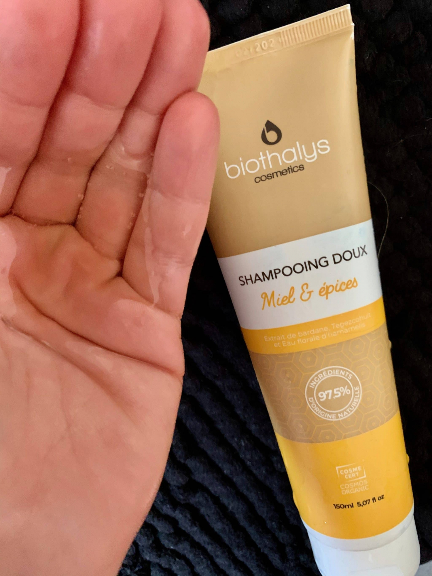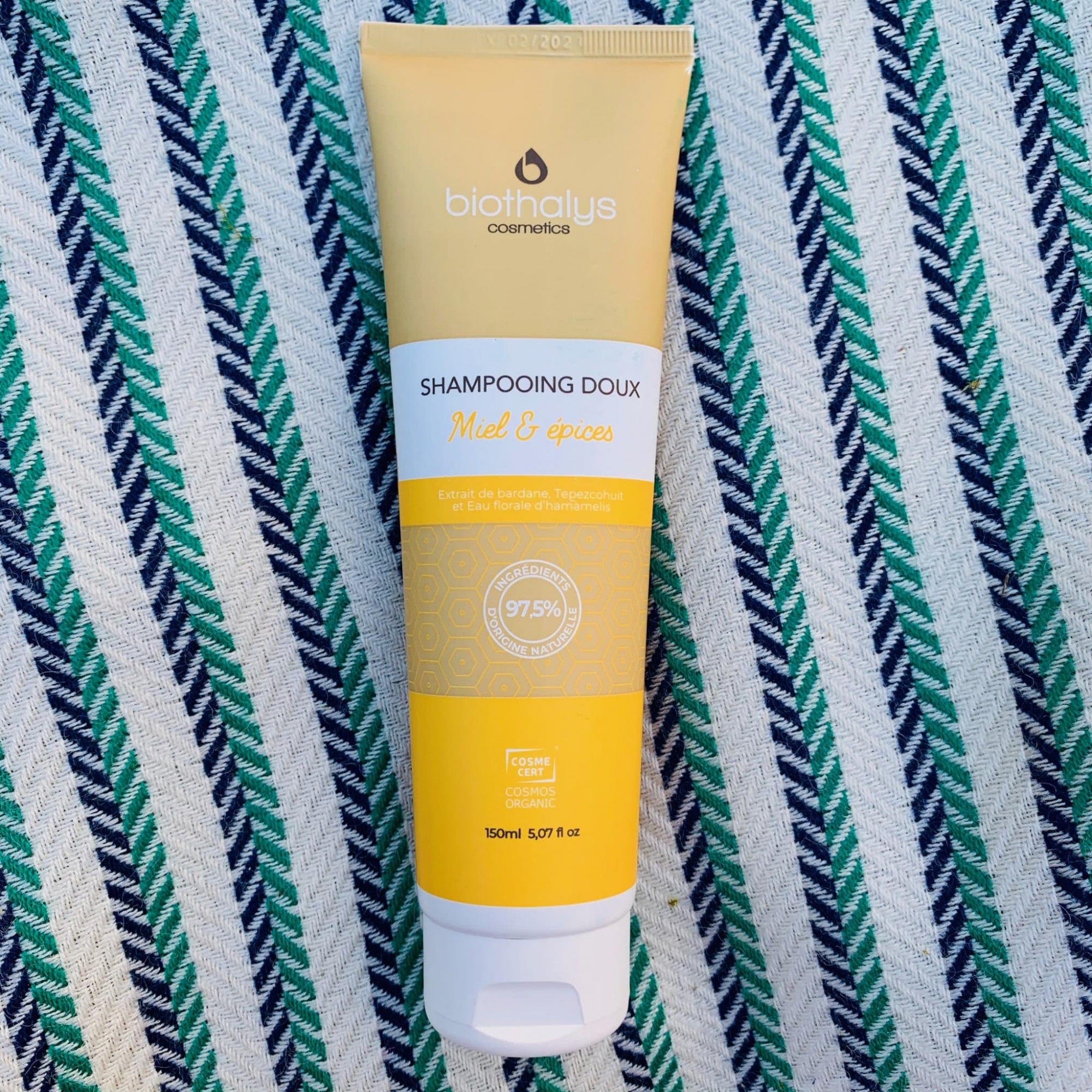 J’ai lavé mes cheveux en étape 3 avec Biothalys, le shampoing doux miel et épices. Une texture liquide, un parfum divin hyper sensoriel, j’ai adoré sur mes cheveux . Sa composition, de l’eau florale d’hamaelis, extrait de bardane, extrait de tepezcohuit, aloe vera. Des vertus apasaisantes, adoucissantes, purifiante, nettoyante, hydratante et réparatrice.