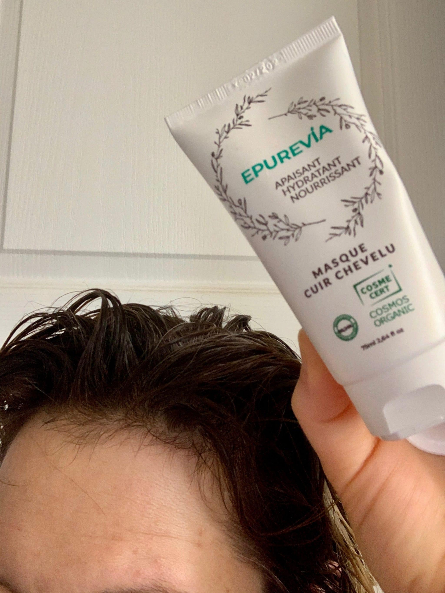 Passons à l’étape 2 de cette routine avec un masque cuir chevelu Epurevia a utiliser avant votre shampoing. Nous rinçons le bain d’huile, nous essorons nos cheveux, puis on applique ce masque. Riche en aloe vera, beurre de karité, extrait de perle, bardane, nous laissons agir 5 minutes.