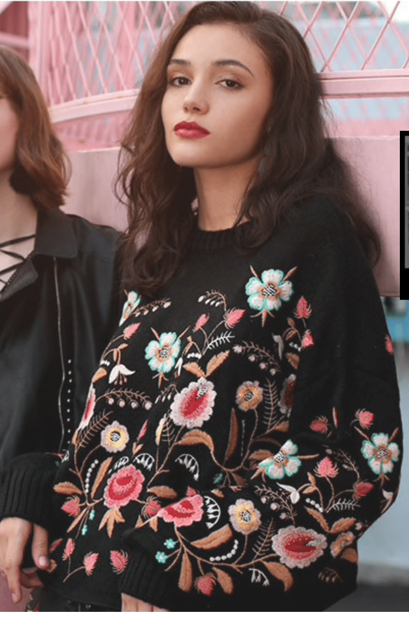 Je continue avec ce pull brodé:
