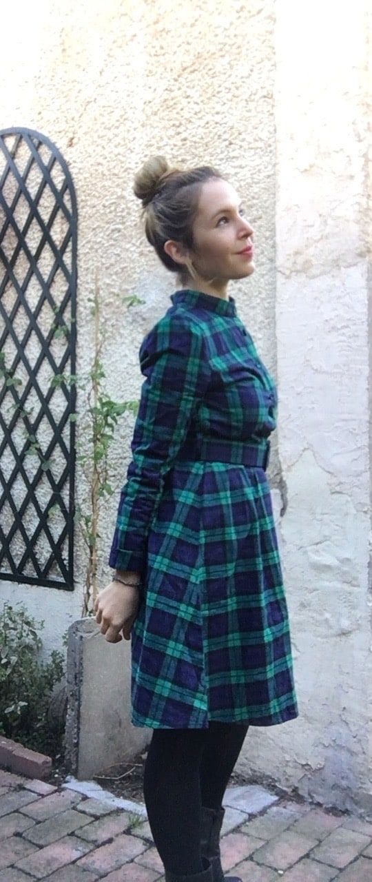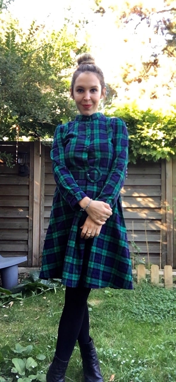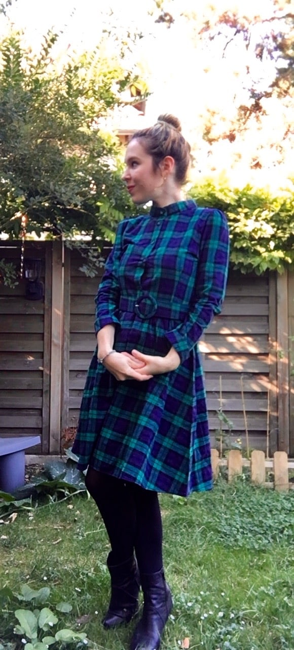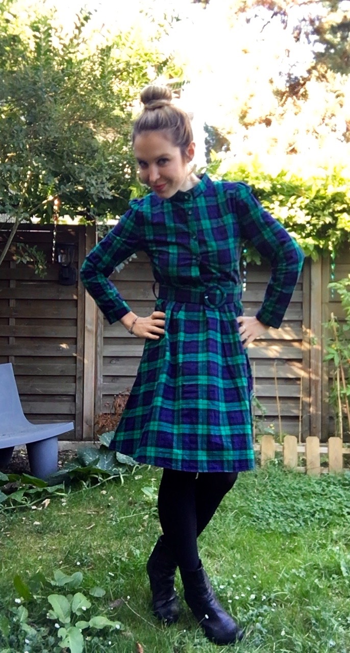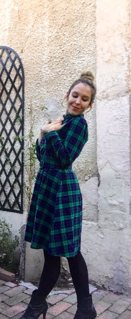 J’ai craqué pour une robe à l’imprimé plaid qui est chaude, j’adore son imprimé original .