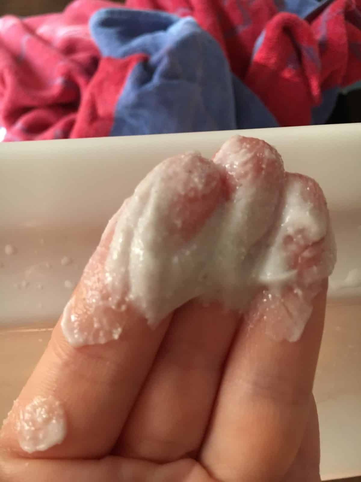 Je continue avec le gommage qui est mon coup de coeur dans ce rituel soin des pieds et jambes.