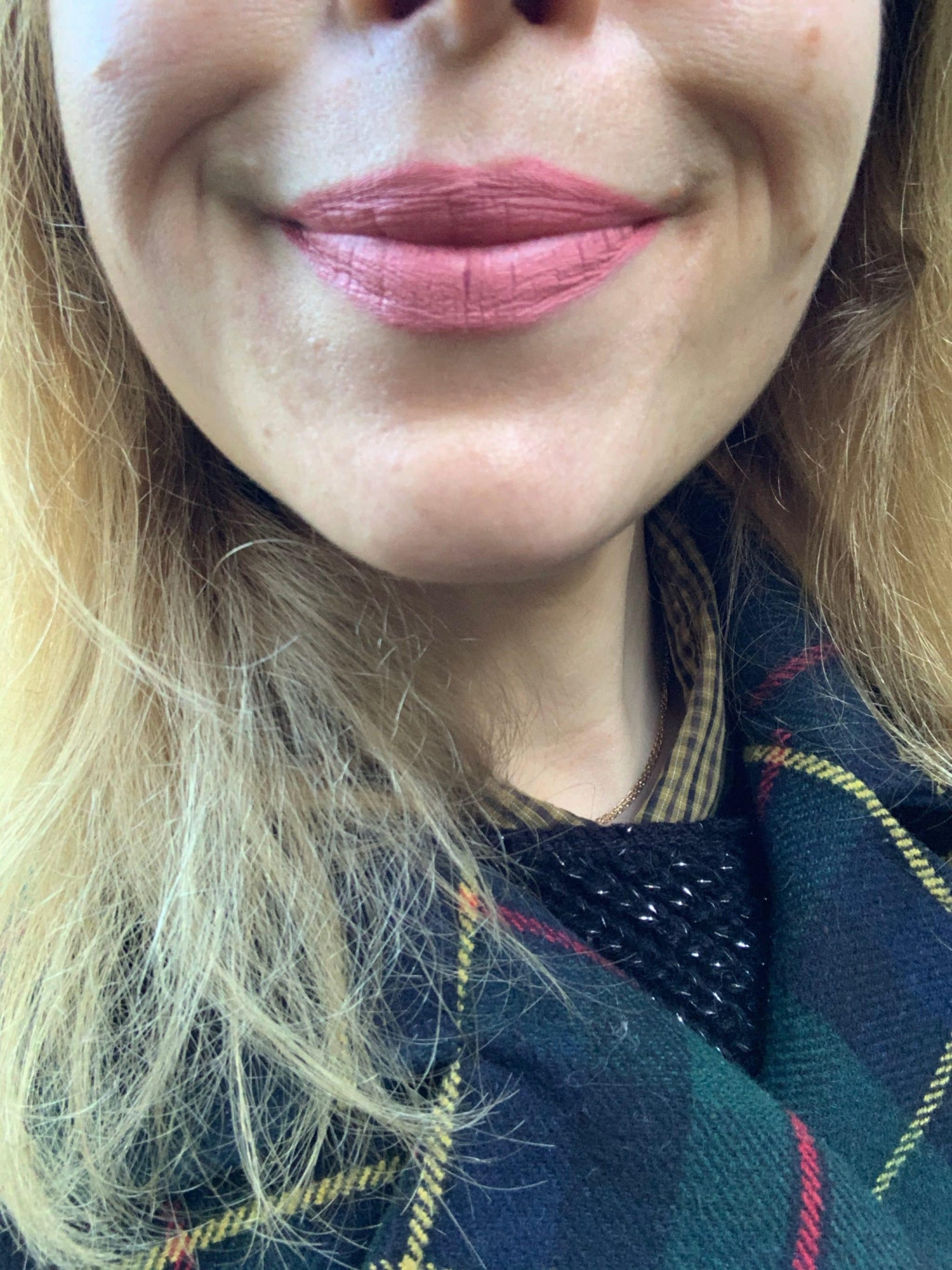 Nous sommes sur un rouge à lèvre liquide, un effet mat, une application simple, mordre un mouchoir pour éviter les transferts et profiter.