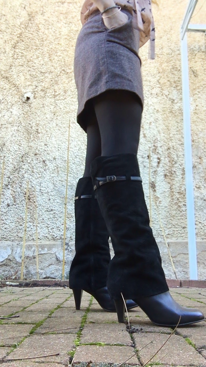 Mes bottes, c’est un gros coup de coeur quand je les ai vu chez #Rodier, elles sont uniques originales tout en restant classique. J’adore l’idée de mélanger du daim et du cuir.  Elles sont dans un esprit « équitation » qui fait penser aux chaps . Celles qui me connaissent, savent que j’adore monter à cheval et du coup je craque pour ce qui y fait écho. Elles sont ultra féminine et avec un jean c’est aussi canon.