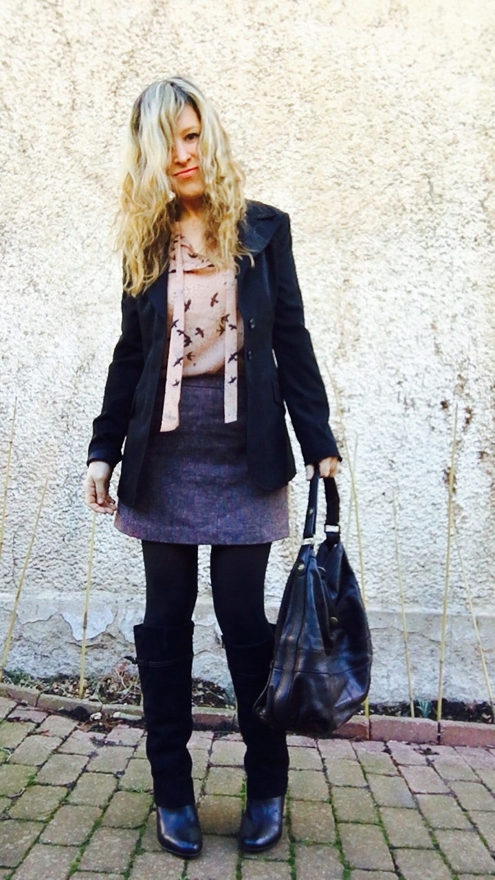 Lundi on reprend les chemins du bureau, c’est un look  » Va travailler Femme ! » que je vous présente… J’ai eu bien froid lors du shooting en chemisier en extérieur, c’est d’ailleurs étrange qu’on ne voit pas mes poils de bras dressés, c’est parti .
