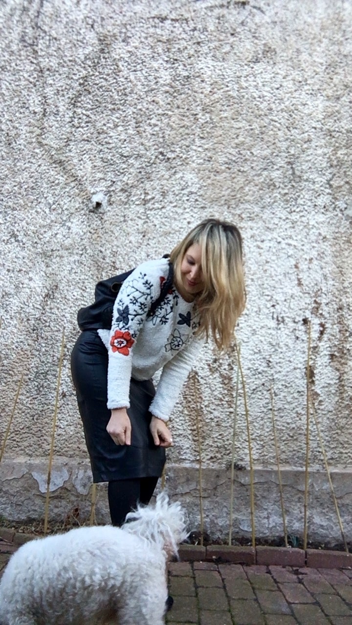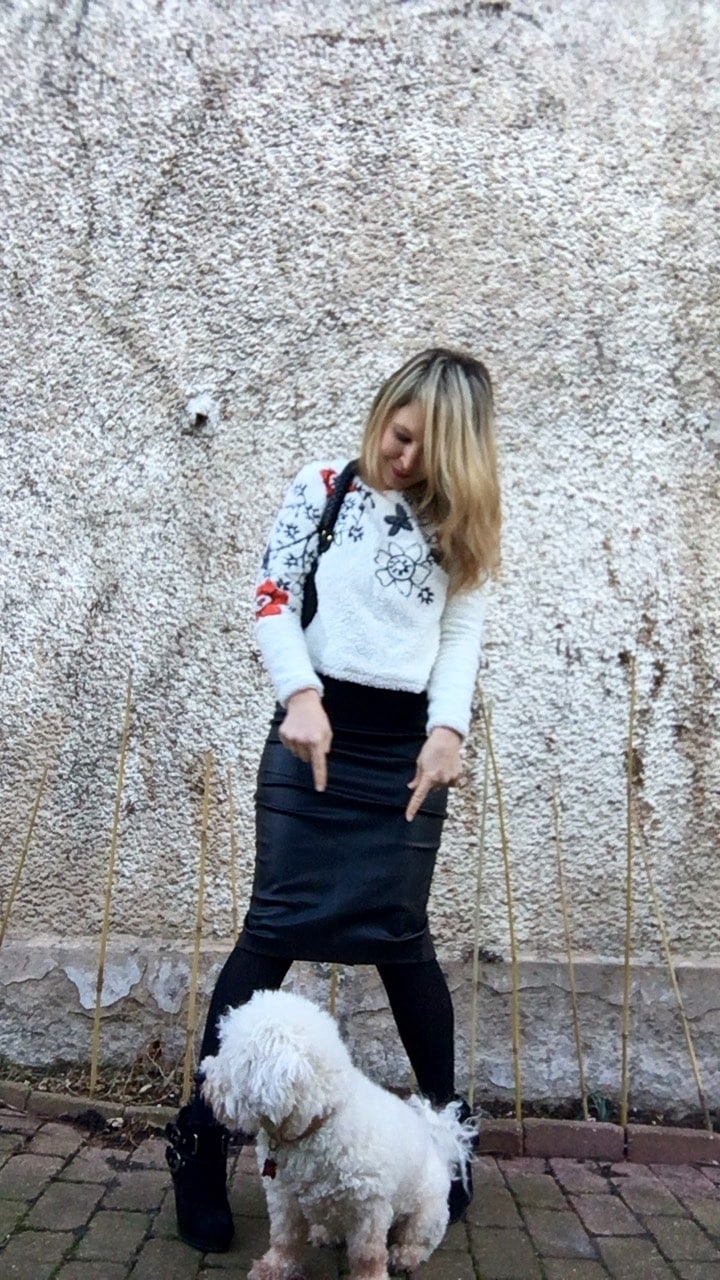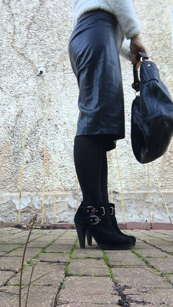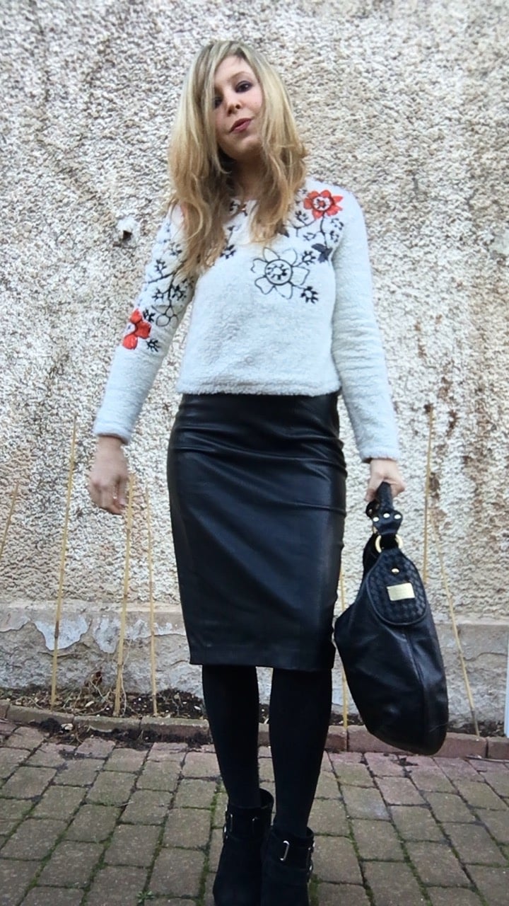 Le pull sweat crop vient de chez #Derhy il est chaud, réconfortant pour la saison, bien cintré ce qui nous permet de rester féminine. Je le porte avec cette jupe crayon en cuir, c’est un parfait combo.