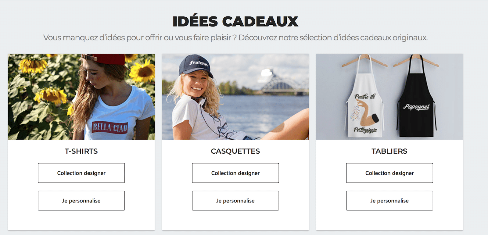 Un site où l’on trouve des idées cadeaux, des objets à personnaliser et des vêtements tendances .