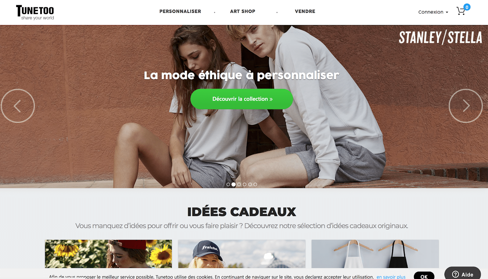 Sur ce site on y trouve de nombreux vêtements mais également des objets à personnaliser .