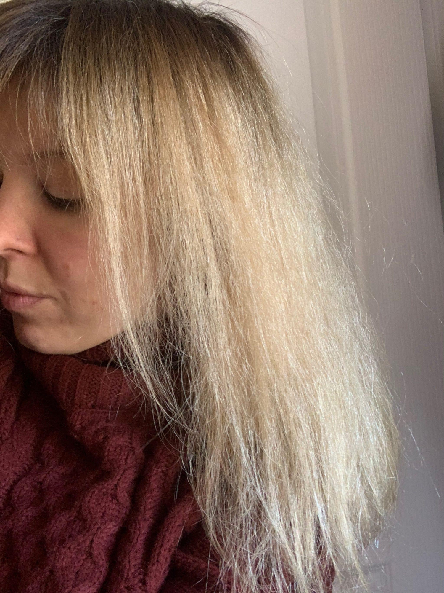 Des cheveux qui sont lissés, un aspect beaucoup plus « esthétique » pour des cheveux très fragilisés c’est du luxe . Je tiens à souligner qu’ils font moins » paille » , il ont gagné en souplesse. Ma crinière étant décolorée c’est compliqué de trouver des soins adaptés nourrissant et léger qui ne fasse pas casque ou le cheveux lourd.