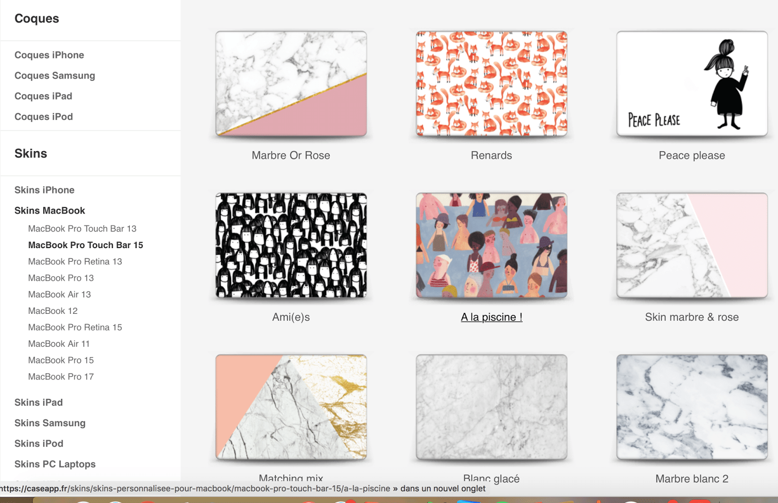 Je voulais depuis un moment trouver un skin pour mon mac comme on le fait pour nos téléphones portables avec nos façades. On en voit plein, des Disney, le motif marbre qui est tendance et qui existe en plein de couleurs dégradées.