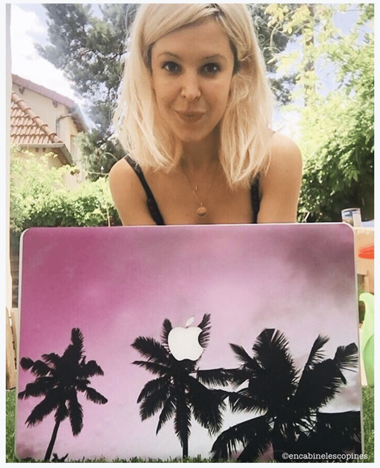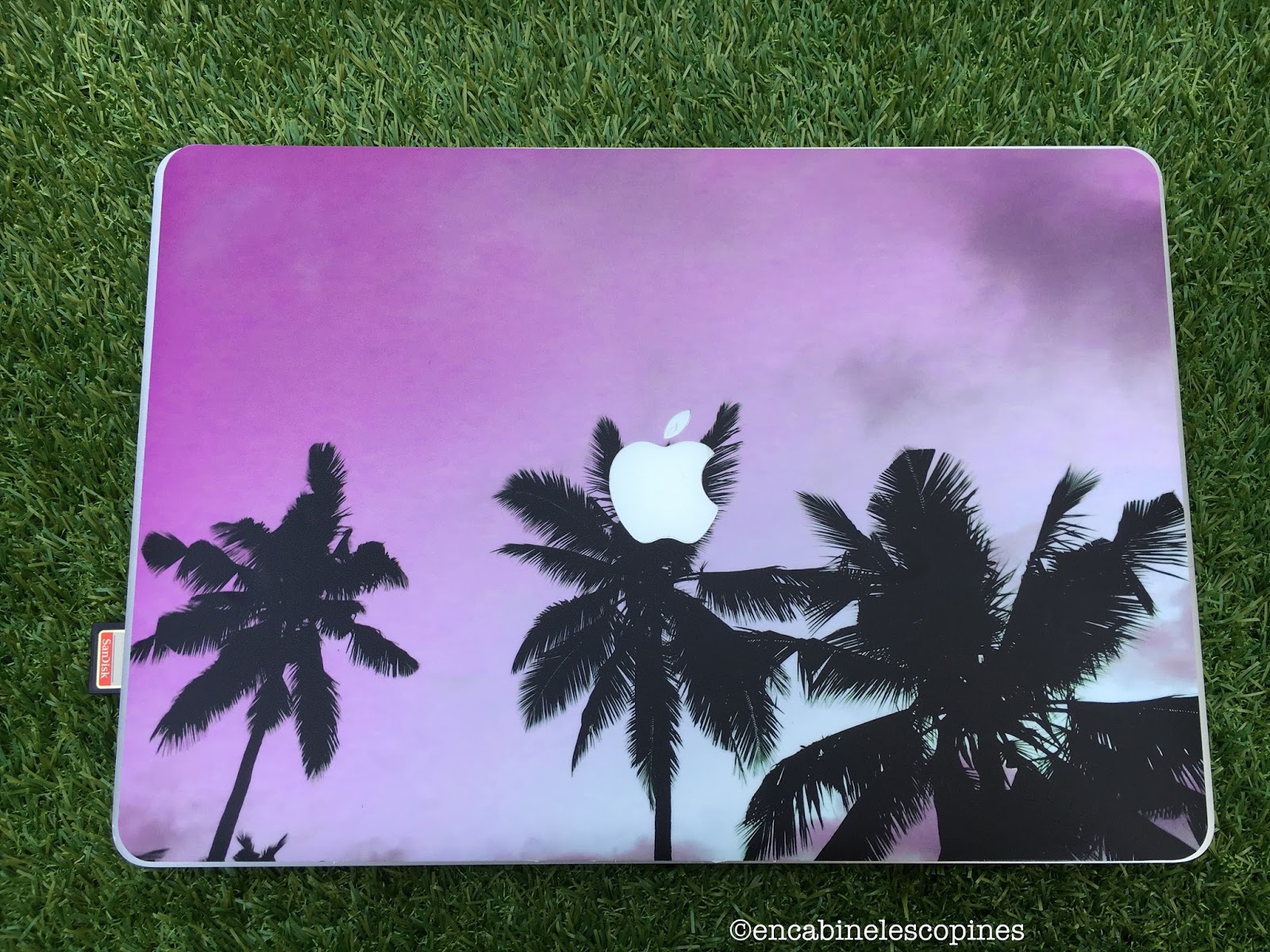 J’adore personnaliser mes objets et depuis longtemps je voulais m’attaquer à mon Mac. J’ai craqué pour le motif exotique car on dirait un poster des années 90 avec ce beau dégradé de rose. J’avais très envie du motif marbre, mais j’ai décidé de ne pas faire comme tout le monde.