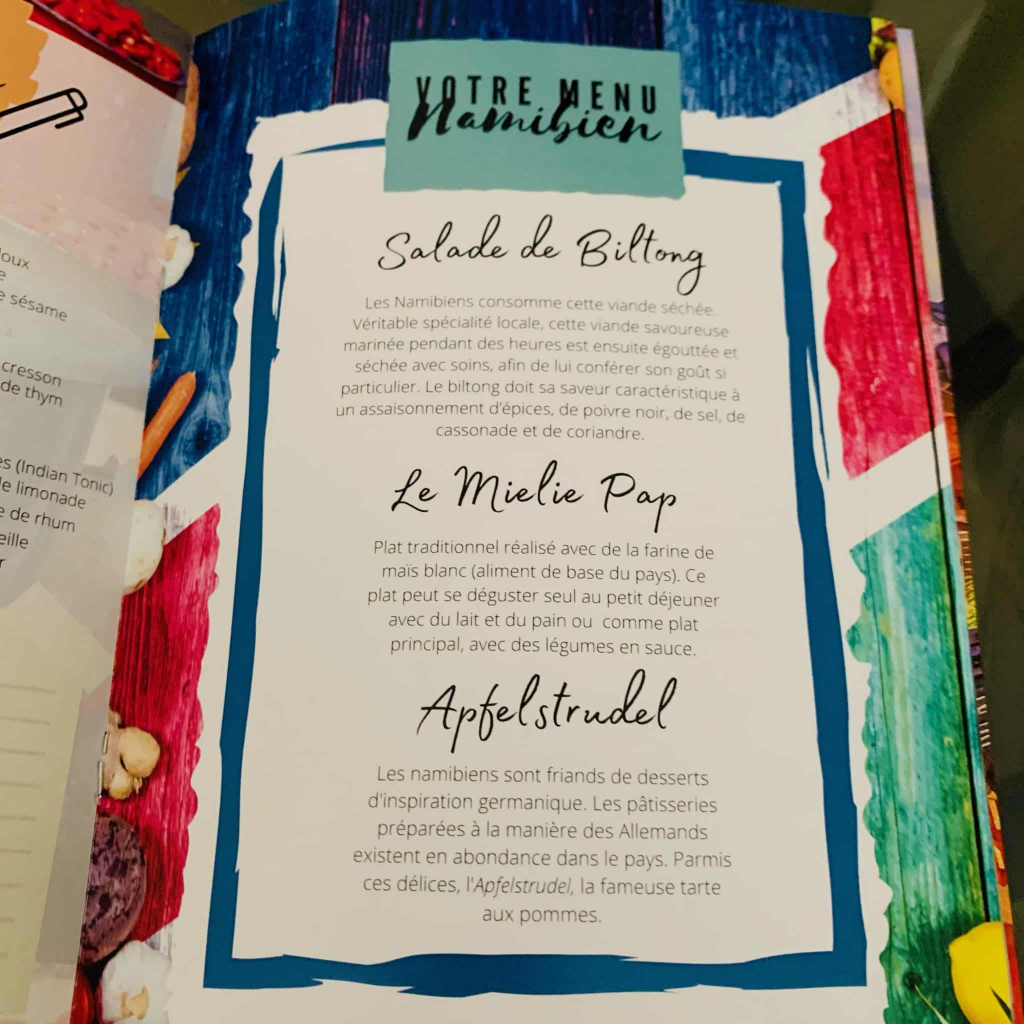 Premièrement, j’ai reçu la destination « Namibie », surprenante car je connais très mal l’Afrique. C’est donc une destination parfaite et j’en suis ravie. L’occasion d’organiser un petit repas avec ma famille, je sais que mes filles vont adorer.